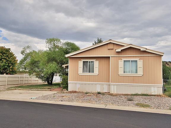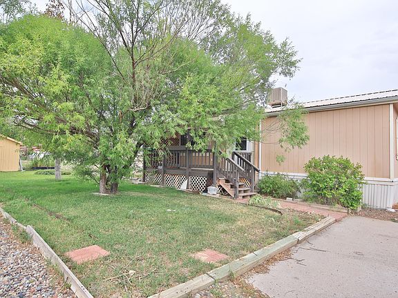 Find this 3 bedroom, plus multi-use room, 2 bath manufactured home located in a kid/pet friendly community within minutes of the I-70 corridor in Rifle, CO. Home is located on a rented landscaped lot with mature shade trees and shrubs. Concrete parking pad and brick walkway lead to the covered porch. Step into an open concept floor plan with high rise ceilings and natural light. Spacious living/dining area. Kitchen with all appliances included and a breakfast nook. Master bedroom with walk in closet, full bath with garden tub, and step in shower. 2 additional bedrooms offer comfortable space for guests or a growing family. Multipurpose room can be used for any need such as an office, hobby room or exercise area. Carpet and linoleum throughout. Forced air gas heat and evaporative cooler. 5x10 storage shed for all the extras. Close to shopping, parks, recreation and more in the historic town of Rifle on the western slope of Colorado. Enjoy all the recreation Colorado has to offer and return to this cozy home.