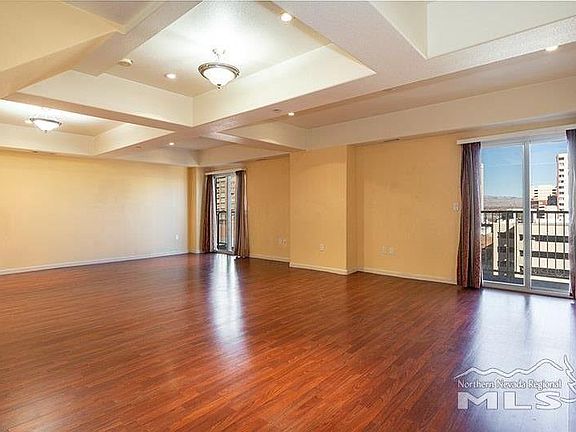 Large (1,540 sf) luxurious 2 bedroom condo at Riverwalk Tower, next to Truckee River in downtown Reno. Two master suits with jacuzzi tubs. Building amenities include secured access, outdoor pool & spa, gym, underground parking garage (1 space), Additional storage room. Utilities are included except power, water. Washer & dryer inside the apartment. One year lease