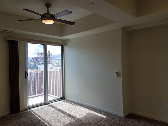 Beautiful west facing one bedroom on 8th floor in high-rise building in the Riverwalk District downtown Reno. Move-in ready. Features: stainless steel appliances, granite counters, cherry cabinetry, tile entry, kitchen , & bathroom, jetted tub/shower combo, washer/dryer in unit. Building features: seasonal pool, spa, and gym. One year lease. Move in fee $100 to Riverwalk Towers. Tenant pays: electricity, water, cable wifi. Trash, sewer, 1 parking space included. Storage included Security deposit same as rent. $40 application fee per person. Credit check required.