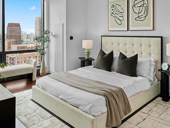 Nestled in the heart of the Upper West Side, AIRE soars over 400 feet in the air with breathtaking views of Central Park, the Hudson River and Manhattans skyline. The 43-story tower offers studio to three-bedroom luxury rentals. Residents enjoy a private drive-court leading to an extensive lobby, along with a state-of-the-art fitness club, a childrens playroom, an elevated park with intricate plantings, strolling paths, a reflecting pool and much more. Sophisticated living awaits at the AIRE.