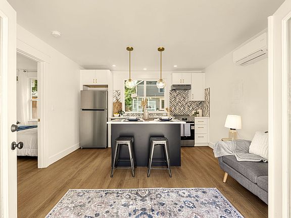 Inside, you'll find hardwood flooring throughout, creating a warm and cohesive feel. The stunning kitchen is both functional and stylish, featuring ample countertop and cabinet space, a well-sized island, and all stainless steel appliancesperfect for everyday living and entertaining. French doors open from the living space to create seamless indoor/outdoor living, filling the home with natural light and extending your living area.