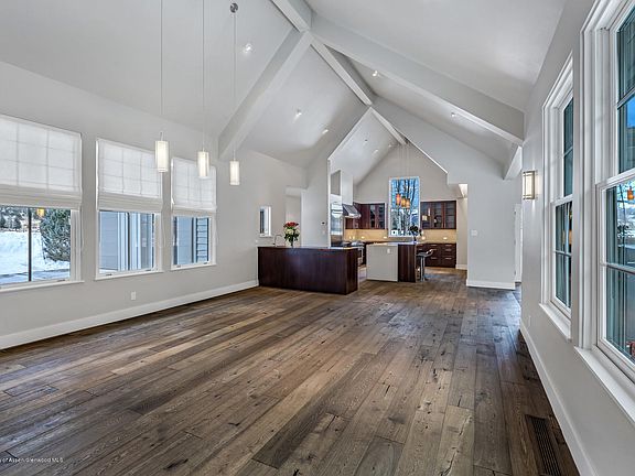 Located on the 17th tee box with magnificent unobstructed Mt. Sopris views, this home has been completely renovated into a contemporary gem. Enjoy an interior open air courtyard that brings the outside in. Gourmet chef's kitchen. Bonus room above the garage with a wet bar, perfect for working from home or watching a movie. Main floor master suite with a sitting area, work space, bathroom, and spacious closet. Every inch of the house is beautifully finished. Downstairs offers family and guests their own space and kitchenette. Leviton lighting and remote blinds to provide protection from the southern sunshine without loss of views. This stunning home allows for one floor living, expanding up or down only when desired.