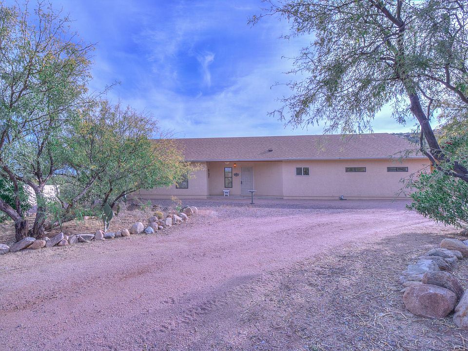 This is a beautiful custom built 3/2, ranch style home on almost an acre fully xeriscaped. It is located less than ten miles from Roosevelt Lake and just steps to Tonto NationalForest, for water recreation, hiking/exploring, camping and ridingyour ATVs.Large open split floor plan has dual zone (2) AC units, with new carpet and walk-in closets in allbedrooms, the Master bedroom having two closets. Custom cabinets throughout home,including extra large laundry room boasting clothes folding area and extensive pantry.Detached three car garage/workshop (44 x 32) is fully insulated, EVAP cooled and has 3/4 bath,water heater, washer/dryer hook-ups and attached travel trailer carport.Exterior includes three separate covered areas wired with electricity