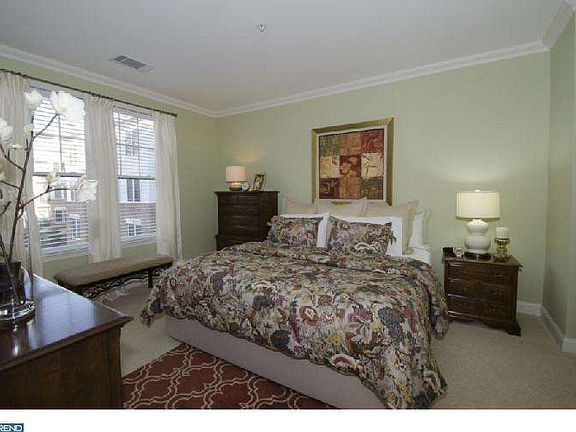 Welcome to #1323 - a pristine 2 bedroom, 2 bathroom suite in the sought-after Grande at Riverview! This gorgeous home boasts extensive designer upgrades, custom painting throughout, and sunny views of a landscaped courtyard. Kitchen offers granite countertops that include a large breakfast bar, ample 42" cabinetry, custom-made glass tiled backsplash, Whirlpool appliances, below cabinet lighting, designer ceiling and pendant lights, and a sizable pantry with shelving. Entryway, kitchen, and living/dining room feature 32" wainscoting throughout and additional recessed lighting in the laundry/hallway area. A spacious balcony with bamboo tiled flooring overlooks a sun-filled courtyard complete with professional landscaping, well-manicured lawn, outdoor fountain, outdoor fireplace, grills, and seating area - it is ideal for warm weather entertaining! Crown molding in the kitchen and main living area carries over into the spacious master bedroom with two walk-in closets and en-suite bathroom with custom lighting and mirrors, double sink, and separate shower stall and soaking tub. Second bedroom is the perfect flex space that can be used as a large second bedroom or home office complete with an additional walk-in closet. Second bathroom features upgraded designer lighting and mirror with plenty of cabinet space. This home is in impeccable condition and with two deeded garage spaces is a MUST SEE. Move right in and start enjoying The Grande lifestyle including pool, fitness center, and private outdoor gathering areas.Pet friendly, secured entry and access to the Schuylkill Bike Trail. Walk to restaurants and pubs, offices and shops. Quick access to Routes 76, 476 and the PA Turnpike, 10 minutes from King of Prussia and 20 minutes from Center City Philadelphia