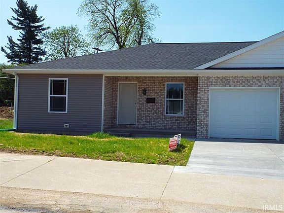 This brand new condo is the east unit and is currently finishing construction. It offers 2 bedrooms & 2 baths. The open floor plan includes: a spacious living area, a fully applianced kitchen (refrigerator, dishwasher & range/oven), loads of cabinets with lots of counter space, solid surface counter tops, a dining area, full size washer & dryer, and a water softener. Easy care flooring throughout. Main Bedroom has an adjoining bath. A spacious one car attached garage is included, 200 Amp Service. This condo is one of the last available units in the McCreary Manor Condominium Regime and is located in downtown Fort Branch close to dining & the new Fort Branch Library. Condo Fees $1200 per year. Property Taxes have not been assessed. Note: some pictures are of a previously completed unit.
