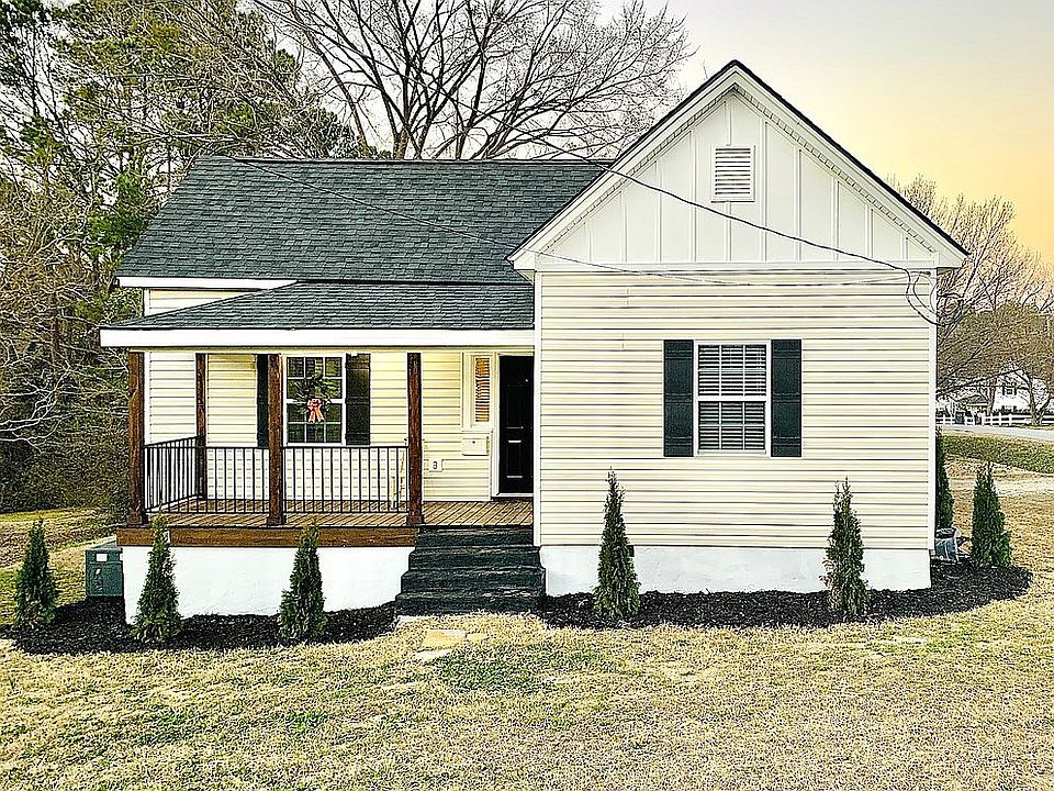 BEAUTIFUL HOME in the heart of Erwin. 2 large bedrooms, 1 full bath. All NEW kitchen opens up to living room area. Spacious foyer for entertaining. All NEW stainless steel appliances, cabinets and countertop, roof, interior paint, flooring, board and batten siding, front porch, lighting fixtures throughout the home, electrical switches, window treatments, and luxurious landscaping. Recently installed hot water heater, HVAC/heat pump, vinyl windows, home wrapped with OSG, vinyl insulation board, and house wrap under vinyl siding. Well insulated. Wiring updates done with new HVAC system (220amp). Washer/dryer hook up in home. Make this beautiful home yours. Come see it today! This one will go fast!