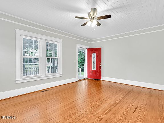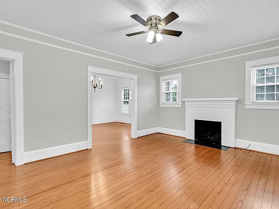 Don't look any further! Step inside this charming, move-in ready dollhouse and experience true craftsmanship from a by-gone era. Situated on a slight hill above street level, you are provided a nice view from the rocking chair front porch. Built in 1928 per county tax records, you will find gleaming original solid wood floors and beautiful plaster walls. Don't worry, updates include brand new, energy-efficient stainless steel appliances and a freshly-painted interior. Easy-care vinyl siding, energy-efficient windows, and new white light-filtering blinds are in place. Tongue-and-groove ceilings in many of the rooms provide character, while built-ins supply function and charm. The adjoining formal living room, with breathtaking fireplace, and dining room are perfect for entertaining. The adjacent kitchen, which also opens up to the family room, has plenty of cabinets and is quite functional. How pretty is the tile backsplash? A welcoming primary bedroom and full bath are conveniently located downstairs, while two bedrooms and full bath complete the upstairs -- don't forget to check out the built-in vanity with mirror in one of the bedrooms upstairs. Tucked behind folding doors downstairs, you will find the laundry closet. The large storage shed located in the backyard provides ample storage space for all of your outdoor toys and lawn maintenance equipment. Located within the city limits of the quaint Town of Clinton, this home is an easy 10-minute walk to shopping, fitness center, and restaurants. Mature pecan trees dot the yard, just waiting for you to enjoy! Investors take note. This listing has been a consistent income-producing property from day one. Current rental rate, before updates, was $980 per month.