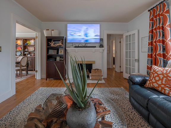 Welcome to your charming brick ranch nestled in the heart of downtown Zebulon! This cozy abode features 2 bedrooms, a spacious living room with a fireplace, and hardwood floors throughout. Enjoy the privacy of a fenced backyard complete with two storage buildings and a large patio, perfect for outdoor gatherings. Situated on a corner lot, this home also boasts fresh landscaping, offering both convenience and tranquility. Don't miss out on this gem offering both comfort and character in a prime location!