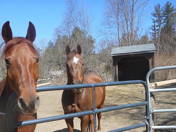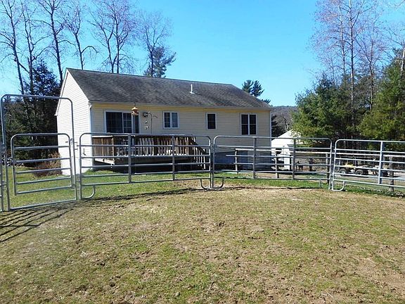 CARS? TRACTORS? HORSES?? This newer property is a great little horse place, with 3 stall barn, tack room, hot and cold water, and paddocks. Also trails out behind. OR the property can be bought without horse fixtures, for a perfect car person , with the 36x36 building that has two garage doors, and a people door. Loads of side yard space, going all the way to Moss Brook Road. Good for parking vehicles or pasturing horses. An 8x14, handy shed stores more stuff. Lawn, raised beds and some flowers growing. Oh, yes.....House! Three bedroom, two full bath, open living area, nice deck, lower level laundry, a big room for a machine shop or family room, two car over-sized garage. A buyer will want to change some carpeting, but sellers will help work that out! Very nice yard, above road level, and comes with a little strip of land across the street on the river which has GOOD FISHING!! Quite the place for varied uses.