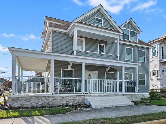 Classic early 20th Century Beach home totally renovated and ready for your family. Sitting on a corner lot across from the new Solcow park, This lovely home has been refinished top to bottom and gives you everything you want in a home down the shore with plenty of room for family and guests. Featuring 6 bedrooms and 3 full baths. Wrap around front porch welcomes you home. Bamboo flooring throughout. All new windows recently installed along with a 50 year roof. Enter into the open living area that beckons you to the huge eat in kitchen. Quartz countertops, custom gray cabinets and stainless appliances. The appliances have barely been used! The family room has french doors leading out to the back yard. Owners have drawings for a deck off of the living room, which can be implemented by the new owners. Upstairs is where you'll find the Master n suite along with 5 large additional bedrooms and a full bath. There's a huge detached garage along with storage rooms, perfect for storing all your beach gear and low speed vehicle. Did I mention this home is coming fully furnished? All of the furniture, beds, the linens and patio furniture. Owners taking a few personal items, beach chairs in utility room, bikes and some personal art work. Easy to see. Call your agent today!