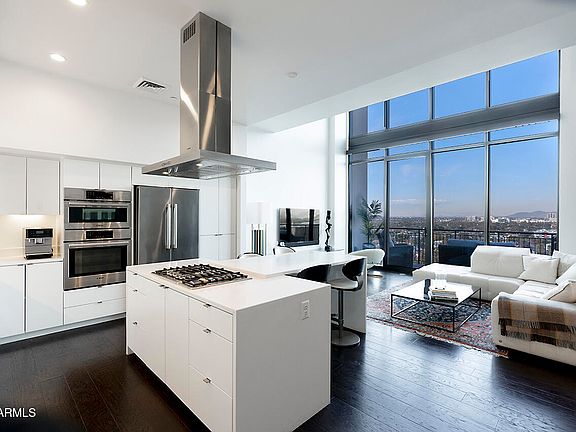 Soar above the city! This sophisticated 2-story penthouse crowns the 14th & 13th floors with 24 feet of dramatic floor-to-ceiling glass framing breathtaking north views—mountains, city lights, Hance Park & the Japanese Friendship Garden. A private retreat, pied-à-terre, or second home, it boasts unmatched design and upgrades galore: brand-new dual A/C units (2024), remote blinds, designer lighting, upgraded closets, and luxury touches from Miele, Toto, and more. Sleek kitchen & great room, inspiring office nook. Exceptional, rare, and unforgettable! Incredible, spacious patio facing north! Upgrades galore including bidet in primary bath, remote water shutoff when you're traveling, kitchen faucet & built-in water purifier, remote controlled blinds. custom lighting/ceiling fan.