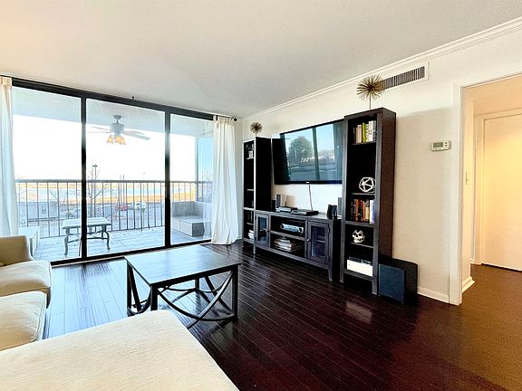 NO HOA fees the 1st 3 months, inquire w/Agent. Exceptional Condo featuring Open floor plan with rooms illuminated w/Natural light and Direct River Views, Hdwd floors thru. Private Balcony w/access from Den and Primary. Secure onsite Garage Assigned Parking. Walk to everything that downtown has to offer. Loaded w/amenities: Indoor & Outdoor pool, pickle ball, Fitness center, Racquetball, Sauna & Steam rm, Billard rm, 24 Hr Security Desk. Split 2 bed 2 bath floor plan w/storage. Easy Living!!