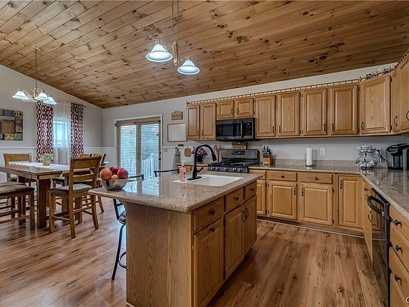 Don't miss out on this lovely 3 bedroom, 2 bath home featuring an open floor plan with vaulted ceilings in the living area, kitchen with an island, granite counters, new appliances, abundance of cupboards and counter space, pantry, and large dining area open to the kitchen with glass sliders to the deck. The master bedroom is located on the first floor along with the full bath. Two bedrooms and a full bath are on the lower level.This is the perfect home for large gatherings and entertaining. A heated garage and large storage shed are a bonus. Just minutes to Watertown and Fort Drum.