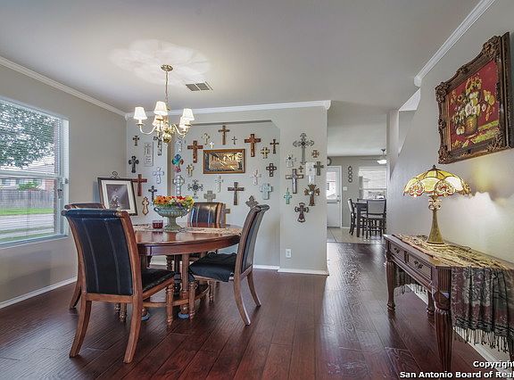 Spacious two story home, sitting on a large corner lot with, luscious landscaping. Walk inside this open concept home, and you are greeted by warm wood floors on the first floor and fresh paint. The large master bed room, with trey ceilings, is capable of holding all of your large furniture. Oversize backyard is perfect for pets, and family football games, or you can bask in the shade under the trees or covered patio. All of this is sitting under a 2 year old roof. Near IH-35, is in the SCUC-ISD
