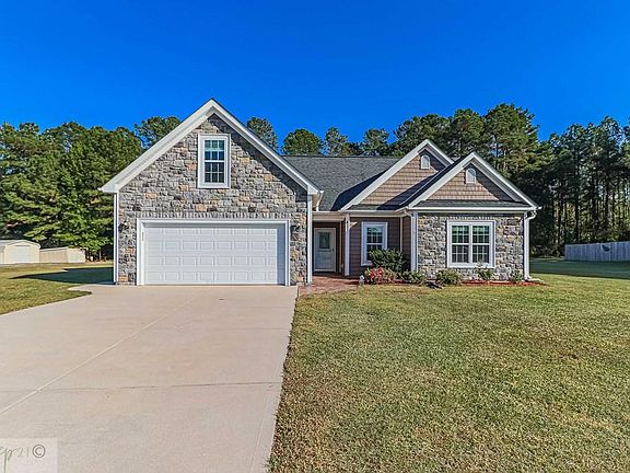 Beautiful custom built home that features 3 bedrooms, 2 full baths, large master bath with double vanities, walk-in shower, whirlpool tub and large walk-in closet. The kitchen has all stainless steel appliances with granite counter-tops and gas range. The fireplace in the living room features electric logs and access to outside patio. Large fenced backyard with storage shed. All bedrooms are located on the main level, second level features FINISHED bonus room! Fresh paint throughout home, MOVE IN READY! CBA Schools, 10 miles to Seymour Johnson AFB.