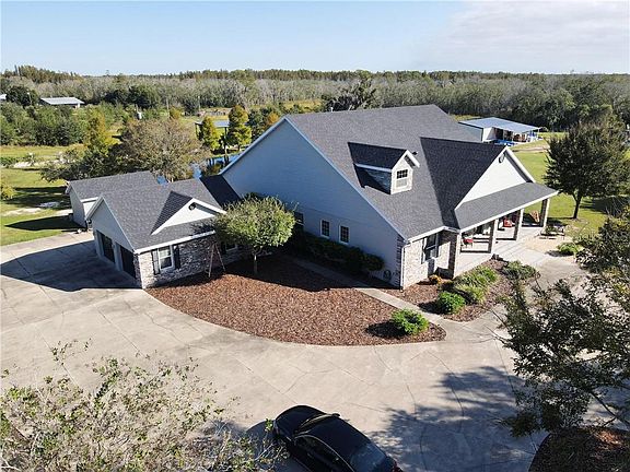 This beautiful home and huge 4.39 acre lot has everything anyone could need. Has it own private pond, with fish and waterfalls, a massive workshop and 1 bedroom apartment. Completely fenced, lake view from the front of the home and pond view from the rear. Every bedroom has it's own full bath, mother in law suite down stairs, 12ft vaulted ceilings. A chefs kitchen with dueling commercial gas stoves, commercial refrigerator, granite counters, beautiful formal dining room. Roof is less than one year old, along with other upgrades, To many items to list, a must see to take it all in! Just minutes from everything, WITH NO HOA!!