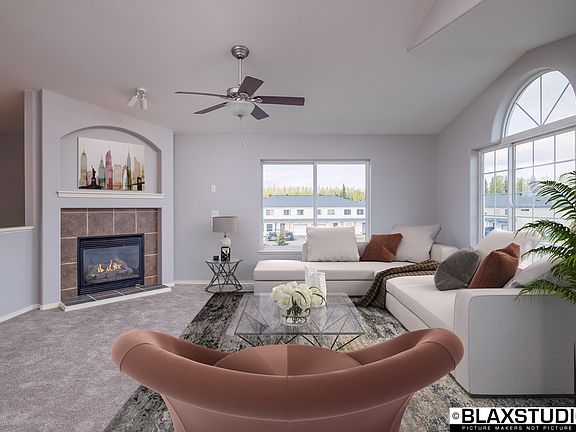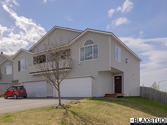 Stunning home with beautiful mountain views! Set in the heart of Anchorage and close to trails, JBER, and the Tikahtnu Commons Center. Open floor plan with vaulted ceilings. All new carpet, new flooring through entry, kitchen, and bathrooms. Brand-new paint! Corner lot with privacy-fenced yard and sunrise balcony. Double car heated garage, new garage door. Great family home or investment property!