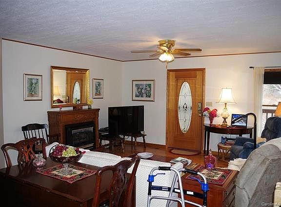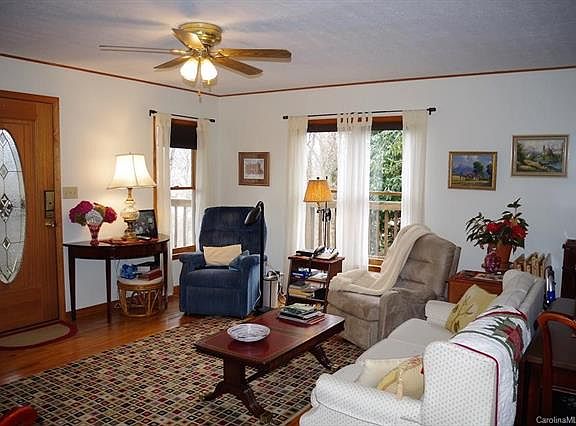 Well-built raised ranch over a full, dry basement is close to town but not in the town limits. Built with handicap access, all doors are 3' wide. Features 2BR/2BA with hardwood floors, oak cabinets in kitchen, open great room design. Gas log fireplace in living room. Two bedrooms were combined for a larger master suite with extra large walk-in closet and small office area. Basement has inside and outside entrances and is heated. New heat pump installed 2018. Wrap around deck with a covered front porch. Has a single, attached carport. Sweet location with beautiful mountain views to the north.