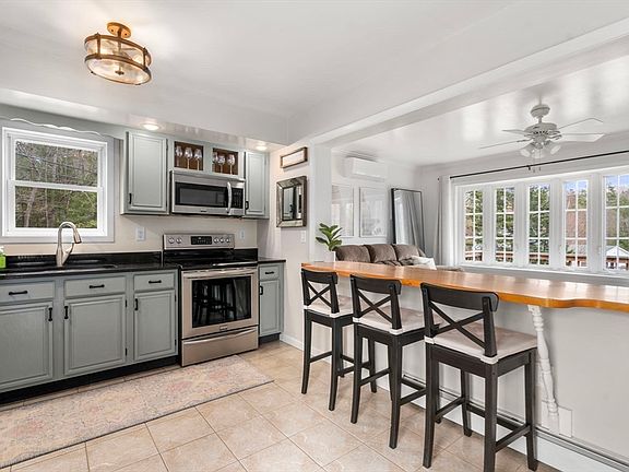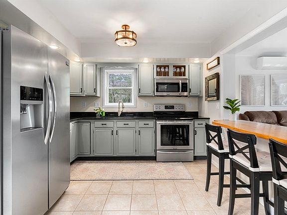 Find serenity in this fully-remodeled raised ranch, designed for modern living in a rural setting. This 3-bedroom, 2-bath home was lovingly remodeled from top to bottom in 2022-2023, with only the finest touches. From bedrooms to bathrooms, to the kitchen, living room, and partially-finished basement, this home looks like an HGTV dream. Plus, upgraded systems make it as turnkey as can be: 3 energy-efficient ductless mini-splits (2023) on top of the new boiler and oil tank (2020) make heating and cooling efficient and economical. MassSave insulation in the attic and basement (2022) add further efficiency savings, and the metal roof emphasizes this home's longevity setup. Multiple new windows add greater light, while new interior flooring, hardwood stairs, light fixtures, doors, trim, hardware, outlets, storm doors, and more make this home look mint. On the exterior, the fenced-in backyard, large front deck, back patio, pergola, garden shed & landscaping make this home an escape oasis.