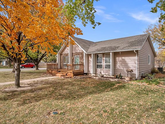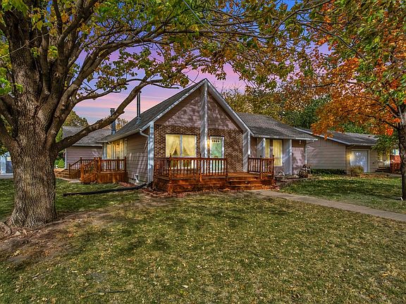 This is a unique house in Hesston. On a large corner lot with trees and room to play or have a garden. The 4 BR's and 3 BA's on the main floor, together with a sitting room a large living/dining/kitchen combo provides lots of living space. The basement as a BA (needs some updating) and the rest of the basement provides more living options. There is a large storage/ utility room with lots of shelving. The large open family/rec room has a wood burning stove that has not been used in some time. The basement walls have been repaired and stabilized by Thrasher company so its ready to be finished out the way you want it. The garage has once side to park a car and the other side was used as a shop. The frame is still there and it can be converted back to a second garage.
