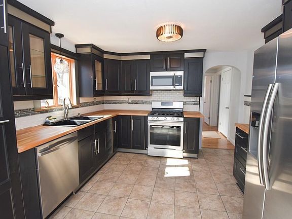 Check out this renovated cape! Four bedrooms that have been freshly painted. Hardwood floors throughout the first floor. Kitchen has been updated with NEW Samsung stainless steel appliances. Dining room has cathedral ceilings and has the door to the fully fenced in yard. BRAND NEW high effiecency heating system, NEW carpet on second floor, NEW TWO CAR garage door w/ openers and partially finished basement are only a couple of the perks this home has!