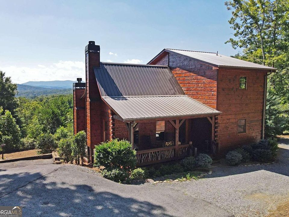 COMPLETELY FURNISHED! Gorgeous Craftsman Cabin Nestled in the serene hills of North Georgia. This Cabin offers a perfect blend of rustic charm and modern comfort. Featuring three bedrooms and three baths, this cozy retreat is ideal for entertaining guests. Three Bedrooms, one on each level, ensuring privacy and convenience. Three Full Baths well-appointed and tastefully designed. Entertaining Areas are Spacious and inviting, perfect for family and friends. Year-Round Long-Range Mountain Views. Enjoy breathtaking scenery from every angle. Fire Pit and Hot Tub Area is a great place to gather around, relax and unwind while taking in the natural surroundings under the stars. Just 5 miles away from Downtown Blue Ridge offering easy access to shopping, dining and entertainment. This craftsman cabin is a true gem, combining the tranquility of mountain living with the convenience of nearby amenities. Whether you're looking for a weekend getaway, investment property or a full-time residence, this property promises to deliver a lifestyle of relaxation and enjoyment. Don't miss the opportunity to own a piece of North Georgia's natural beauty!