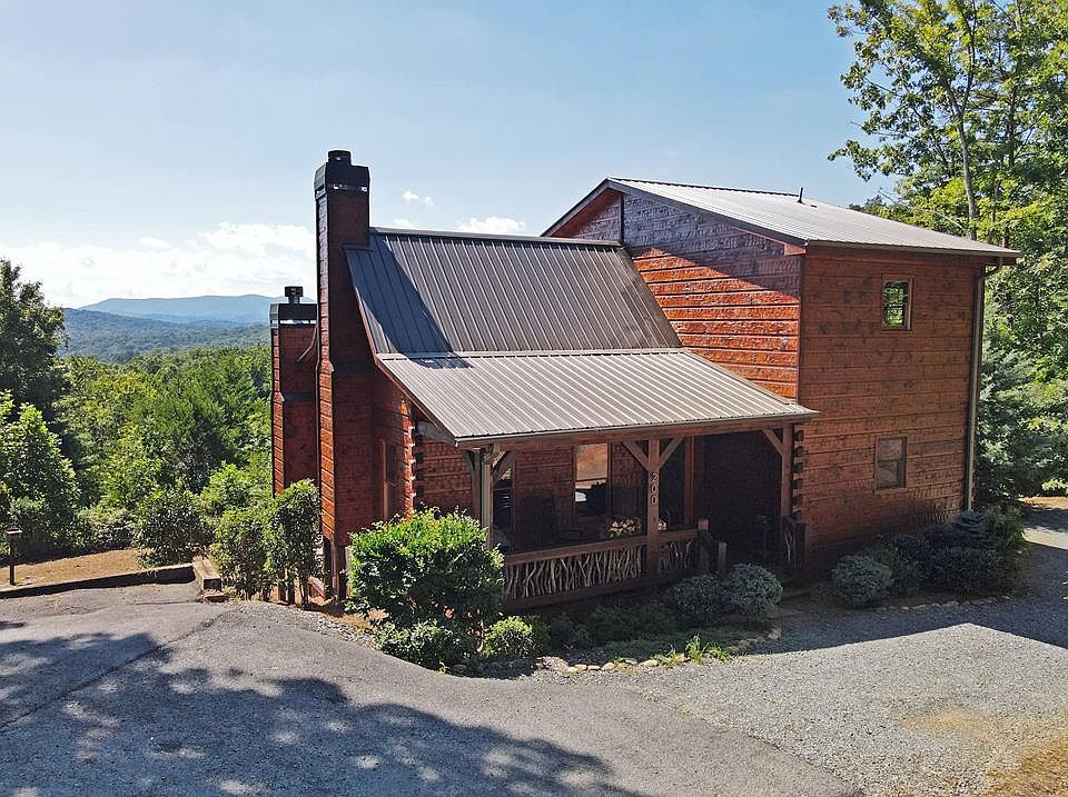 COMPLETELY FURNISHED!! Gorgeous Craftsman Cabin Nestled in the serene hills of North Georgia. This Cabin offers a perfect blend of rustic charm and modern comfort. Featuring three bedrooms and three baths, this cozy retreat is ideal for entertaining guests. Three Bedrooms, one on each level, ensuring privacy and convenience. Three Full Baths well-appointed and tastefully designed. Entertaining Areas are Spacious and inviting, perfect for family and friends. Year-Round Long-Range Mountain Views. Enjoy breathtaking scenery from every angle. Fire Pit and Hot Tub Area is a great place to gather around, relax and unwind while taking in the natural surroundings under the stars. Just 5 miles away from Downtown Blue Ridge offering easy access to shopping, dining and entertainment. This craftsman cabin is a true gem, combining the tranquility of mountain living with the convenience of nearby amenities. Whether you're looking for a weekend getaway, investment property or a full-time residence, this property promises to deliver a lifestyle of relaxation and enjoyment. Don't miss the opportunity to own a piece of North Georgia's natural beauty!