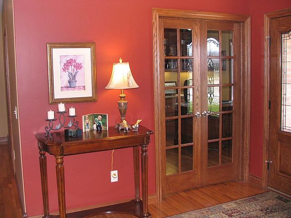 Elegant and Pristine best describes this 2,053 square foot home, built in 2009, with four bedrooms, three and one-half bathrooms, custom built kitchen, and a three car climate controlled attached garage. It is all brick for an elegant appearance and limited maintenance. It also features a detached garage that is 884 square feet with a matching brick exterior. It is climate controlled as well. The 361 square foot concrete deck is covered and is located just out of the kitchen door for cookouts with family and friends. The basement includes a family/rec room with a gas fireplace. Storage is abundant on both floors of this home. It features a second basement stairs from the garage into the basement storage area and access to the family/rec room. This home is exceptional for entertaining with its open floor plan, and custom kitchen. The kitchen features oak cabinets that extend to the ceiling providing for maximum storage and beauty. All of the cabinet shelves are adjustable, and some are the "pullout" shelves for ease of access to those items being stored there. The island is large providing additional work space for entertaining guests. All kitchen counter tops are granite, and the large walk-in pantry is a cook's delight. It is well lite, and provides a large area for food storage within the kitchen. The stainless steel appliances enhance the kitchen and will remain in the home. The floors in the kitchen, dining room, foyer, office, and hall are oak hardwood. The living room is an open concept to the kitchen, with a gas fireplace and large windows to welcome in the natural daylight. The dining room is large enough to seat family and friends for those special occasions. The office is most accessible and convenient for home and business, and the glass inlayed doors provide limited visibility, and maximum privacy. There are two and one-half bathrooms on the main floor and one in the basement. The master bedroom and walk-in closet are spacious, and the master bathroom features a whirlpool bathtub, walk-in shower, double sinks, and the stool is secluded in its own private room. In the basement, the family/rec room is open with a gas fireplace, surround sound, and an ingress/egress window. There are two bedrooms, one full bathroom, in addition to the family room. Part of the basement is being unfinished and is being used for the home's mechanical equipment, and storage. There is a second basement entry from the garage, which provides direct access to the basement storage area without the need for accessing the basement through the living room area. This home has many unique features and benefits. For example, all of the doors in this home are solid core doors, whether it is the walk though doors, a folding bedroom closet door, or a pocket door. Another would be the audio, video, and data system that provides TV, radio/music (including Sirius/XM by subscription), telephone, and internet to all rooms in this house. This home has its own water well supplying water to the underground sprinkler system and landscaping. The attached three car garage is climate controlled, as is the double detached garage. The detached garage has numerous 110 & 220 single phase electrical power outlets throughout. The single garage doors are 8'h x 10'w (not 7'h x 9'w), and the detached garage doors are 10'h x 16'w. There is also an electrical connection for a generator and double throw.