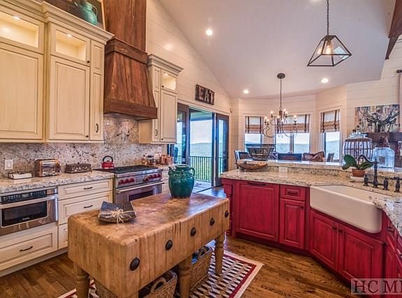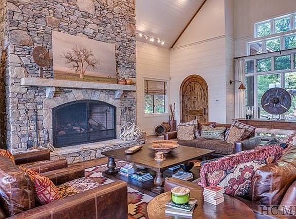 On top of the world at an elevation over 4,100 feet, enjoy this estate property with gorgeous panoramic mountain views featuring an open-concept home and much-desired one-level living. The home, completely redesigned and remodeled in 2015 in a modern mountain style, boasts hardwood flooring throughout plus grand cathedral ceilings with reclaimed pine and oak beams, and a massive native stone fireplace in the great room. Designer kitchen features include custom cabinetry, granite countertops, farm sink, large island, and top-of-the-line appliances. The master suite abounds with mountain views, a private balcony, warm rock fireplace, soothing sauna, sitting room with another fireplace, plus a large ensuite with copper soaking tub, large glass tile double shower, and large walk-in cedar closet. The home has two other guest suites with private porches catering to the views. This beautiful home sits on 5.60 acres with established landscaping and level gated entry. With too many features to mention, this is a must-see property.