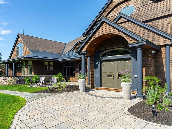 An architectural icon overlooking scenic rolling fields. A floating staircase welcomes guests to an elegant great room designed for grand gatherings and transcendent sunsets. The kitchen, dining, and family room wing features world-class updates and expertly designed intimate spaces. The 1st floor master suite features countless amenities. A billiards room, exercise studio, 4 car garage, and flawless outdoor pool & entertaining area complete the residence. The carriage house hosts 2 additional garage bays & a half-court basketball gym. A one-of-a-kind opportunity, minutes to Falmouth Schools, shopping, and an international airport.