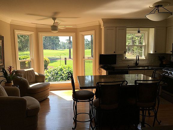 Welcome to this well-maintained 4 bedroom, 2.5 bath, brick ranch home conveniently located on the 9th green of a golf course. The kitchen features a bay window with a beautiful view of the golf course as well as white shaker cabinets, quartz countertops, hardwood floors, and subway-tile backsplash. In the den you will find hardwood floors and a wood burning fireplace with gas logs. The garage features an oversized, side-loaded 2-car garage. The yard includes an irrigation system and a well. Seller will provide buyers with a home warranty. For sale by owner; agents welcome.
