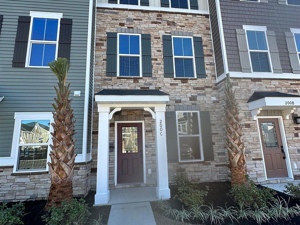 Welcome to Forest Pines, a new townhome community consisting of only 84 homes. Located across from Arrowhead Golf Course, the HOA covers grass cutting and mulch bed maintenance, exterior insurance policy, trash collection, and access to an on-site pool and clubhouse. This neighborhood is nearby the Tanger Outlets, Coastal Grand Mall, airport, grocery stores, and only 15 minutes to the beach. This townhome is our 3-story Hepburn plan featuring 3 bedrooms, 3.5 bathrooms, a dedicated ground floor recreation/flex room, a ground floor rear patio, and second-level deck off the kitchen and dining space. All of our townhomes at Forest Pines included stunning exterior curb appeal, granite or quartz countertops, vinyl plank flooring, stainless appliances + the fridge, crown molding, tile backsplash, tray ceilings, and ceramic tiled showers. We have a newly furnished model of this floorplan to preview on-site. Schedule your appointment today!