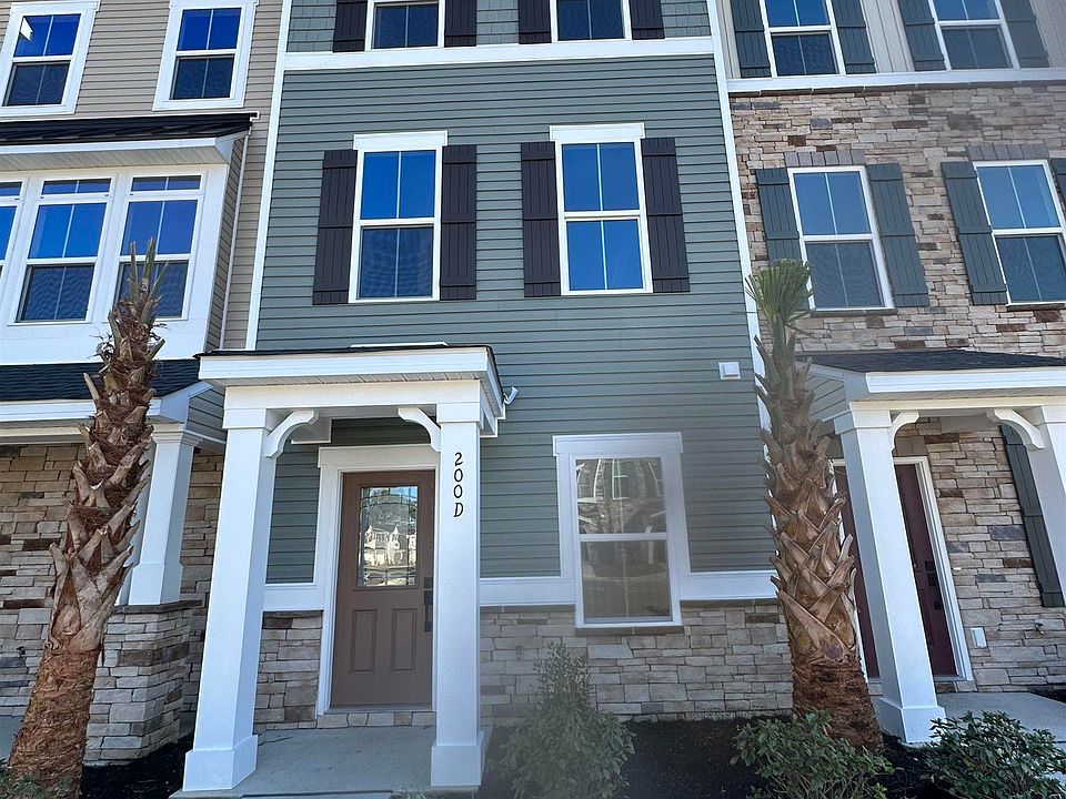 Welcome to Forest Pines, a new townhome community consisting of only 84 homes. Located across from Arrowhead Golf Course, the HOA covers grass cutting and mulch bed maintenance, exterior insurance policy, trash collection, and access to an on-site pool and clubhouse. This neighborhood is nearby the Tanger Outlets, Coastal Grand Mall, airport, grocery stores, and only 15 minutes to the beach. This townhome is our 3-story Hepburn plan featuring 3 bedrooms, 3.5 bathrooms, a dedicated ground floor recreation/flex room, a ground floor rear patio, and second-level deck off the kitchen and dining space. All of our townhomes at Forest Pines included stunning exterior curb appeal, granite or quartz countertops, vinyl plank flooring, stainless appliances + the fridge, crown molding, tile backsplash, tray ceilings, and ceramic tiled showers. We have a newly furnished model of this floorplan to preview on-site. Schedule your appointment today!