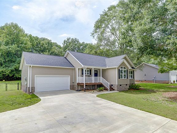 Don't miss out on this nicely built 3BR/2BA home with a fenced backyard and no HOA! Inviting front porch perfect for lazy end of summer nights. Built in 2018 with granite countertops in kitchen and bathrooms. Real white oak hardwood flooring in living areas and ceramic tile in bathrooms. Crown molding and ceiling fans. Soaring cathedral ceilings in the family room. Primary bedroom has a lovely trey ceiling, large walk-in closet with a full bath with double sinks, jetted tub and separate shower. Enjoy the freshly-stained deck and the fenced backyard for outdoor fun and entertaining!