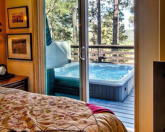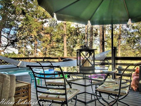 Custom built by 3rd generation Ruidoso contractor Jim Lowrance. Quality construction. Pocket sliders that open the entire east wall onto the 300sf back deck w/ a 7’ hottub. The location of the lot and the careful orientation of the cabin provide unobstructed views of Sierra Blanca to the west and the pine tree canopy of the wooded slopes to the east. Pitched ceiling’s are covered with knotty pine boards. Clerestory windows admit extra light. Granite countertops and a farmhouse apron sink are highlights of the custom kitchen. Professionally landscaped.