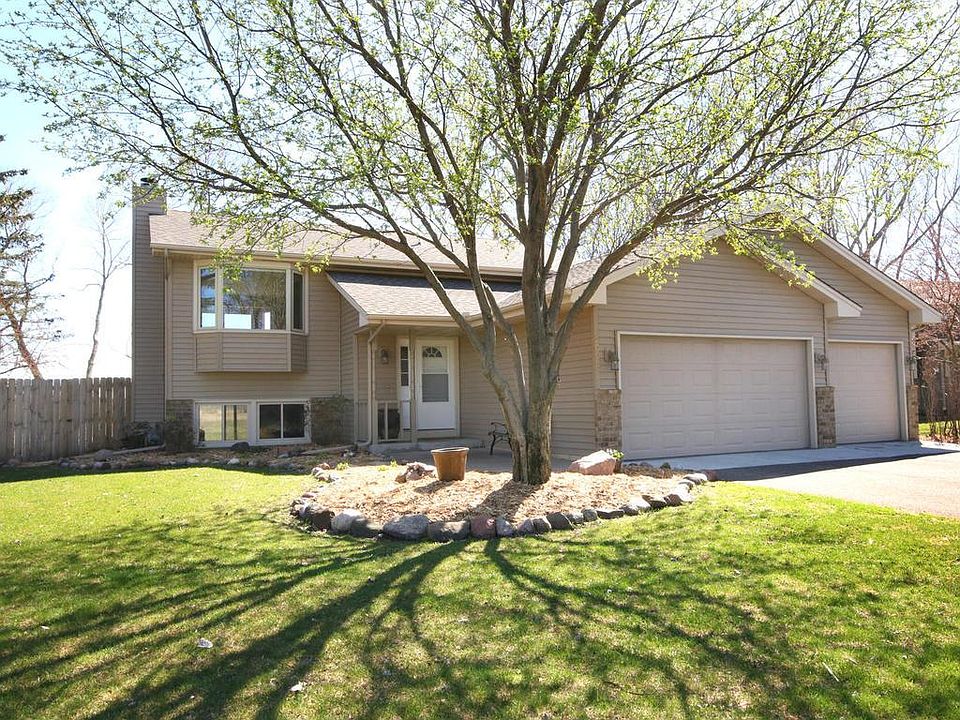 Lovely home on .54 acre w/ privacy fence&backing up to wildlife preserve. New SS applcs, fresh interior paint, new carpet LL, Laminate at UL. Master Bath jacuzzi has new vanity, shower&toilet. 3 car garage is insulated, heated&has updated elec. New driveway apron, 10x10 concrete pad in back, new water heater(2016),Deck, Maintenance free roof, siding, windows &sliding doors, Irrigation, Gas fireplace, Custom window blinds, ceramic at entry way and baths, walkout LL., Directions Hanson Blvd to 121st Ave West to 121st Lane NW to home on left.