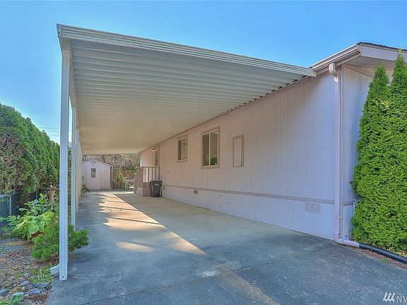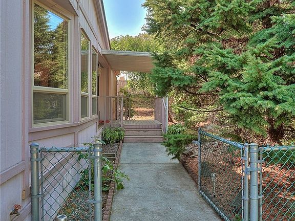 Brookside Village is a well maintained, 55+ manufactured home community with owned land held as a condominium. Nicely laid out floor plan with large master and private bath on one side & 2nd bdrm, den and full bath on the other side. Spacious, open living area, dining area, plenty of storage. Updated windows, Heat pump-AC. Private, fenced back yard with covered patio area. Covered parking for 2-3 cars. Pets OK. Nicely managed. Common area green belt with path along stream.