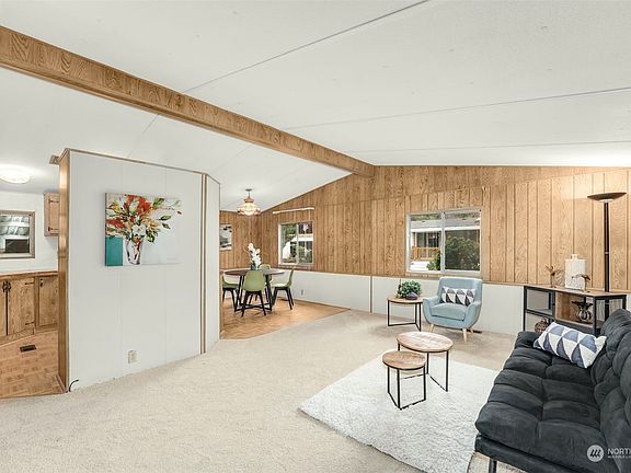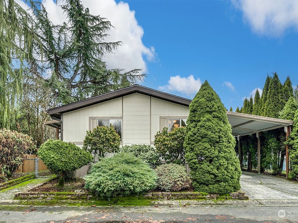 Manu -Condo! Here is a great condo alternative offering an independent low maintenance lifestyle. Detached "Condo/manufactured home with a yard that you own in Brookside Village, a well managed 55+ community with Low HOA dues (water and sewer included) and NO LOT/SPACE LEASE (on owned land). 3 bedrooms, 1.75 baths with large living room, open kitchen with eating space, family room with woodstove and laundry room. Heat pump and forced air electric heat, updated primary bath, new carpet and newer roof. Corner lot, fully fenced yard with garden space and storage shed, 2 car carport. Plenty of parking too. On bus line in great location near all the amenties of Mill Creek, Thrasher's corner and Canyon Park.