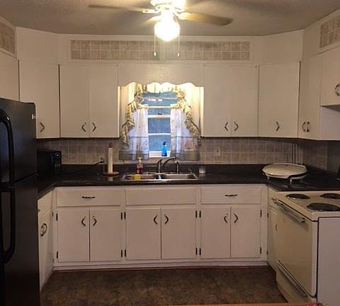 Completely renovated with hardwood floors, laminate flooring, and tile. Freshly painted. Lots of Appliances to remain. Washer and dryer, microwave, stove and refrigerator, all window treatments remain. Some furnishings remain: table and chairs in kitchen, couch. Huge fenced yard with storage building and lots of property for your privacy. Must see! Dont let this one get away!!