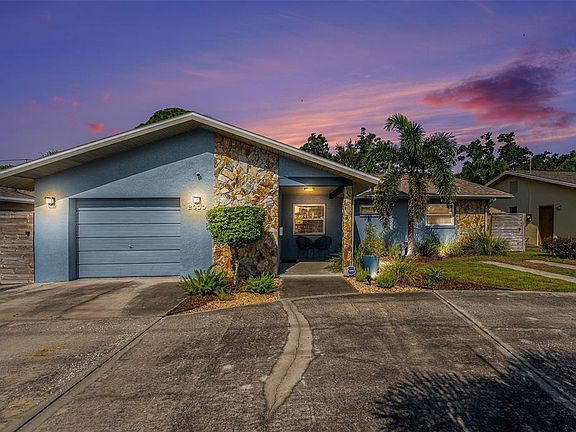 Welcome to your new smart home oasis in St. Petersburg with $5,000 SELLER CONCESSIONS INCLUDED! This stunning property has been decorated by Doma Furnishing and meticulously upgraded, offering a perfect blend of modern luxury and convenient living. Step inside and be captivated by the completely renovated kitchen, a chef's dream featuring elegant granite countertops, marble backsplash, a built-in wine fridge, and a stylish standalone bar perfect for entertaining. The home is equipped with a full smart home system, including Lutron smart lighting and integrated surround sound audio throughout, allowing you to set the perfect ambiance with the touch of a button. Relax in one of two master suites, both designed with comfort in mind and featuring spacious walk-in closets. The living room is anchored by a cozy fireplace, and natural light streams in through some updated windows. The interior has been freshly painted throughout the home. The updates continue outside and behind the scenes. The exterior features a freshly painted finish, a BRAND NEW ROOF (August 2025), and a 2022 A/C unit. There is designated paved space to park/store your BOAT. Enjoy your backyard oasis with a convenient outdoor shower, perfect for cooling off after a day of fun. The oversized one-car garage provides ample storage and even includes a garage fridge. A new hot water heater, a water softener, and a new electrical panel provide peace of mind for years to come. Located within a few blocks of the Walter Fuller Northwest Recreation Center, pickleball courts, and St. Petersburg Parks and Recreation, this home offers an active and vibrant lifestyle. With a circular driveway for easy access, this home has it all. As an added bonus, the homeowners are open to including all the furniture with conditions, making your move-in seamless. Don't miss this opportunity to own a turnkey smart home in a prime location. No HOA or CDD!!