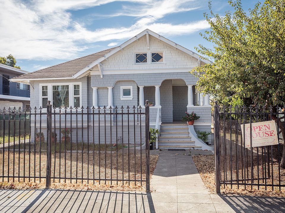 This beautiful home is placed on a corner lot located near shopping, in close proximity to freeways 580 and 880. In this wonderful home you will find 3 fabulous bedrooms, one featuring a bay window! There are also one and a half bathrooms with stunning stone countertops, and a clean aesthetic that follows with the rest of the home. Fresh paint inside and out welcomes you onto a stunningly spacious, tile floor front porch. Walk into this open floor plan that is seemingly expanded by plentiful sunlight provided though abundant window space. Notice the detail molding on the crown, skirt, and doorways of this elegant home. Enter an amazing, country styled kitchen equipped with grand cabinet space, spectacular stone countertops, and beautifully tiled floors. And don't forget the gracious utility space which provides a full size sink and the hookups for your laundry washer and dryer. This home continues to give with a partial basement great for storage, and a converted garage studio!