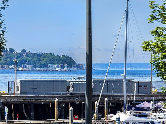 Gas fireplaceGlowing sunsetsMurphy bedContemporary fixturesHigh ceilingsViews of elliott bayBuilt-in cabinets