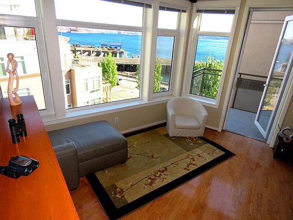 Seattle's prime location w/ Elliot Bay in your front lawn & Pike Place Market in your back yard! Experience DT living from this FURNISHED 2 BRs + 2 baths w/ gas fireplace, laundry room, 1 free assigned parking & a balcony to relax and enjoy Puget Sound and ferries while sipping coffee or wine. Amenities include: 24hr concierge, club room, exercise room & roof top deck w/ BBQ grill. A short step to Sculpture Park & elevator ride to the Market & all the restaurants! Bright open floor plan with specially designed built-ins, updated kitchen. Rent $2700 plus water/garbage $200 per month. Garage parking fee is included in Rent.