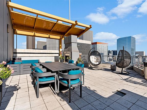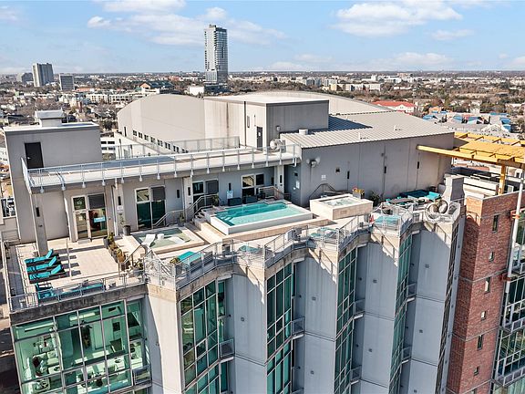 A rare penthouse feel without the penthouse price tag located in the vibrant heart of Midtown, including Midtown's hottest attractions and amenities conveniently located within walking distance. This exquisite luxury condo is perched on a coveted top corner from the rooftop infinity pool, ensuring convenience and elite status. Two-story, floor-to-ceiling glass windows highlight mesmerizing downtown corner views from dual perspectives and an expansive wrap-around balcony. Inside, the first floor captivates with its industrial-chic aesthetic, featuring stained concrete floors. Soaring ceilings, open floor plan, and spacious kitchen, boasting a large island and a private wet bar, perfect for entertaining. The dining area flows seamlessly into a grand living room. Upstairs, the primary bedroom offers a sanctuary of spacious luxury, including a recently remodeled ensuite with an oversized shower, dual sinks, and a generous walk-in closet, plus a secondary room with a secret office.