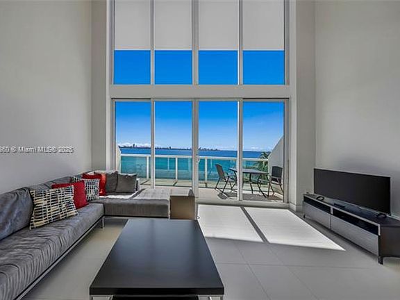 Beautifully furnished 2BD/2.5BA waterfront residence with unobstructed water views and a bright open layout featuring double-height ceilings, floor-to-ceiling windows, and tile flooring throughout. The sleek kitchen includes bar seating ideal for entertaining, while upstairs both bedrooms offer built-out closets and ample storage. Located in a boutique gated building with a serene pool overlooking the bay and one assigned parking space, this unit combines comfort, style, and stunning views. Centrally situated near beaches, nightlife, shopping, dining, schools, and major roads, available for immediate occupancy.