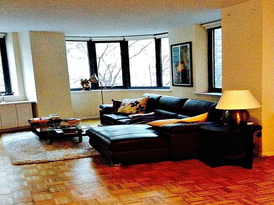 Convertible 2 Bedroom 2 Baths. Floor plan for a two bedroom is provided. Spectacular bright 1 bedroom, 2 bathroom condominium residence situated steps from Lincoln Center, Central Park and Riverside Park, public transportation, best entertainment, dining and shopping. Large living and dining, boasts wraparound windows with endless natural sunlight. Windowed kitchen with a breakfast bar. Bathrooms have marble tiles and marble counters. A closet as big as a room in the foyer. Very large master bedroom suite faces south, with two closets and en-suite bathroom. Currently rented for $4300 until April 2019. Tara Abrams Listing agent TorkanRealEstate Full-time doorman & concierge Private Storage space Large planted garden patio. Cheerful children's playroom and playground. Three levels of fitness center, Gorgeous 40 foot pool, a large jacuzzi, sauna and lounges. Aerobics room with complimentary exercise classes. Laundry room. Private storage unit and bicycle storage. On-site parking, at extra cost.