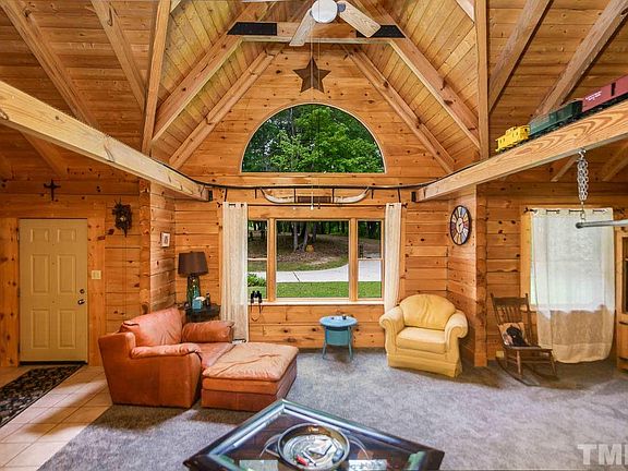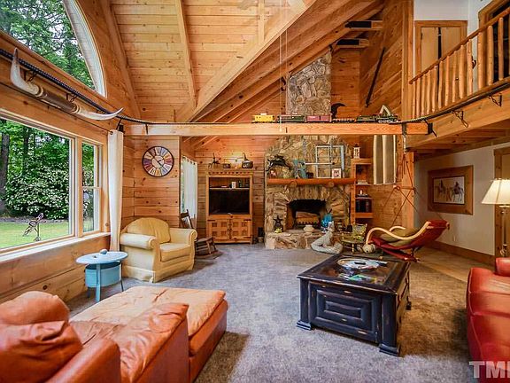 Once in a Lifetime Opportunity to Live in a Beautiful Rustic Looking Log Home on 3.23 Wooded Acres with Pool & No HOA! Cary address but located in Apex. Imagine being completely surrounded by large trees offering privacy galore! Light/bright open design with vaulted ceiling, huge family room w/vaulted ceiling, large kitchen & dining room. Hard to find 1st floor MB. 2 over-sized decks overlook the in-ground pool & surrounding woods. Side loading 2 car garage and additional carport offer lots of parking.