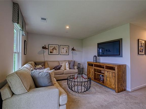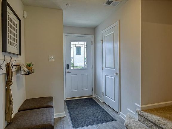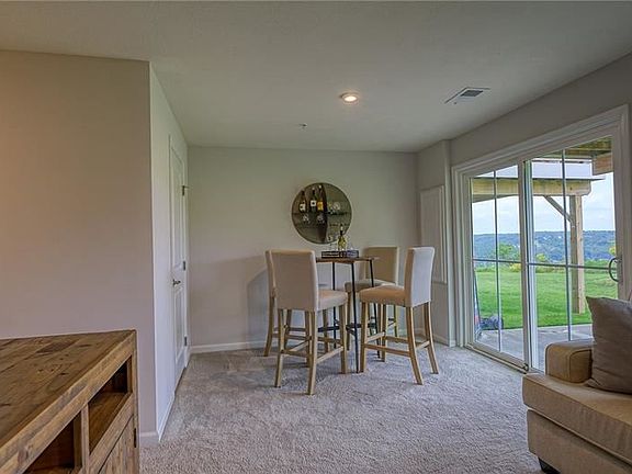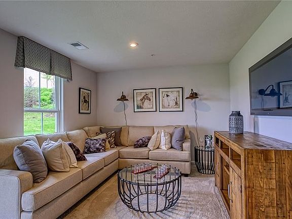 This END UNIT "Beethoven" model home is a winner! Upgraded & beautifully finished interior. Kitchen offers plenty of room for cooking & dining w/ granite countertops, gourmet island, s/s appliances, electric range & pantry. Walk out onto the 12X10 Trex deck and enjoy the view of the river. Generous size living room space connecting to the kitchen/dining rooms. Upstairs highlighted by luxury owner's suite w/tray ceiling & walk-in closet, bath that includes upgraded tile shower and double bowl vanity. 2nd floor also has 2 additional bedrooms, hall bath & convenient hallway laundry room (washer/dryer included). Inviting and homey finished walkout rec room w/ sliding glass door that leads to a concrete pad and yard. WiFi enabled thermostat & garage door opener included. Also includes concrete walkway to side entry garage door, irrigation system and landscaping.