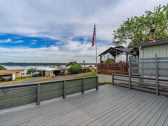 Charming and fully updated lake retreat with panoramic views of Lake Camanche! Located on the North Shore, this inviting 2-bedroom, 1.5-bath single-wide home with a cabana extension offers comfort, style, and incredible valuewhether you're seeking a full-time residence or the perfect weekend getaway. Perched atop a hill, this cozy home boasts 180-degree views of the lake, best enjoyed from the expansive deck, perfect for entertaining or relaxing under the stars. The property includes a lawn area for outdoor play, space to park a boat, and a 10x10 storage shed for all your lake life essentials. Fully renovated just four years ago, the home features contemporary updates throughout including forced air heat and A/C, modern appliances, dual-pane windows, updated linoleum flooring, and durable concrete Hardie board siding. Natural light floods the space, creating a bright and cheerful atmosphere. Washer and dryer are included. Located in a peaceful, well-maintained community with gated security and abundant wildlife, residents enjoy full lake access, including use of the private boat launch. Monthly space rent is $705 and includes water, sewer, and garbage. This is a rare opportunity to own a beautifully updated home with unmatched views and a truly special lakeside lifestyle.