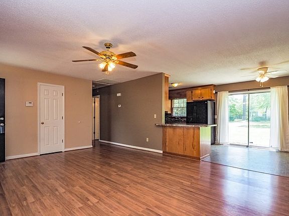 Cute starter home with open kitchen/family room and a split bedroom plan. Large eat-in-kitchen with lots of cabinets including a wine rack. Beautiful tile backsplash. Kitchen has sliding door leading onto back patio. Nice front porch and fenced back yard. Refrigerator, washer, and dryer can convey with property.Security system.